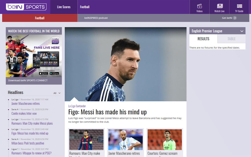 O beIN Sports sediado no Qatar compreende uma rede global de canais, a mais notável por seus serviços de transmissão de futebol ao vivo. A empresa opera atualmente em inúmeros países, incluindo o Reino Unido, EUA, Oriente Médio, Austrália e Tailândia, entre muitos outros.